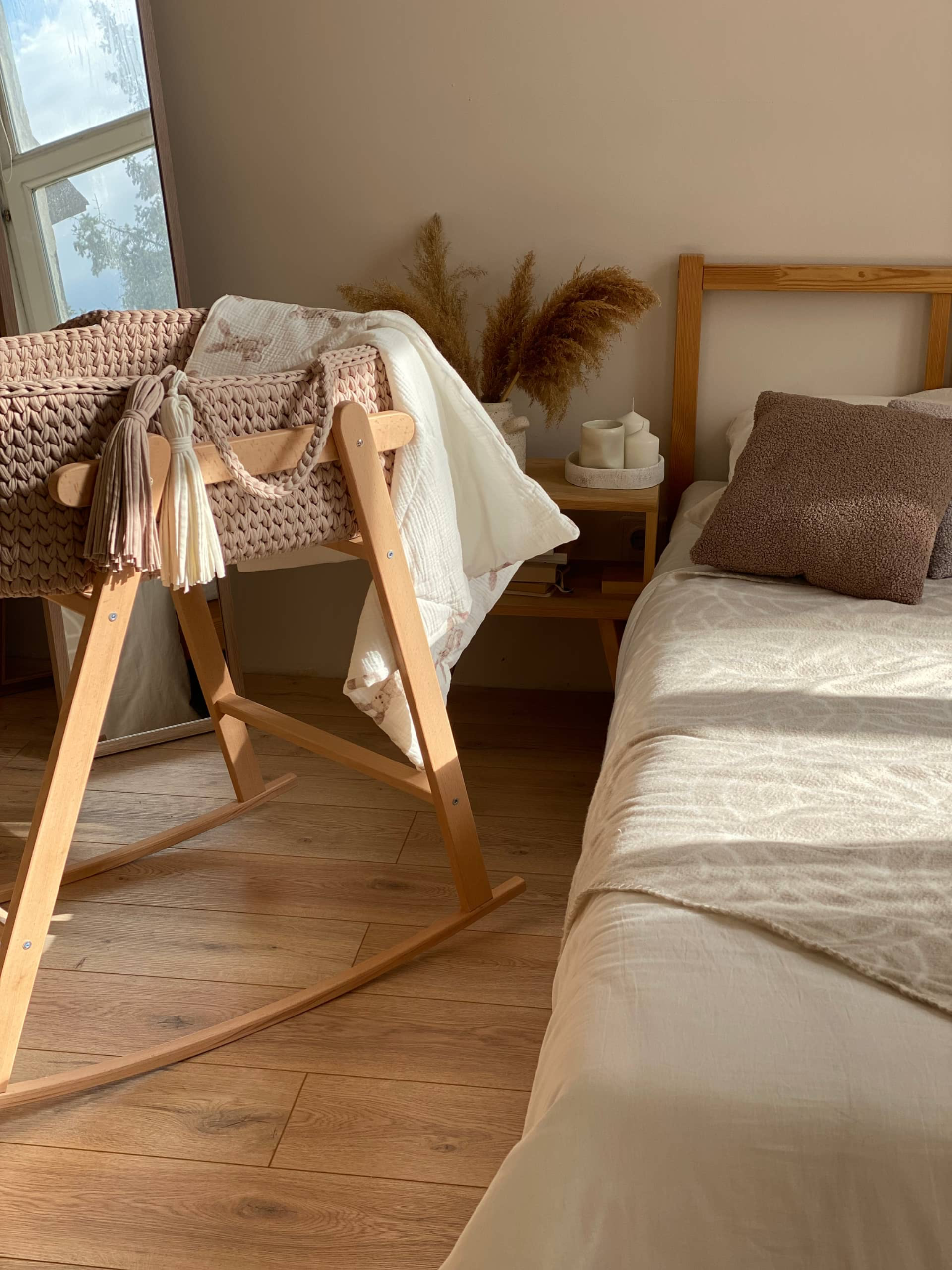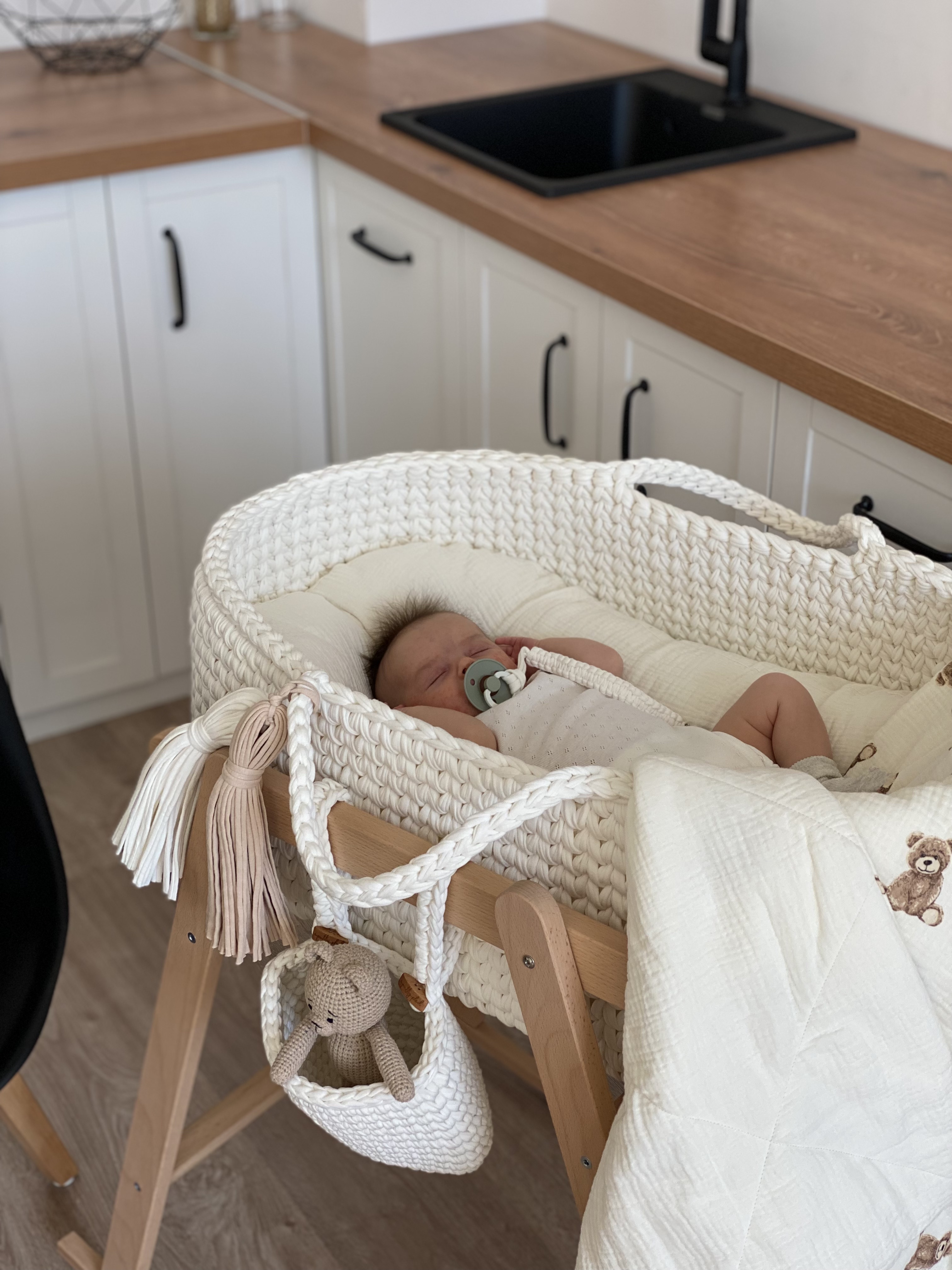 Без подставки вы уже можете пользоваться до тех пора, пока малышу комфортно в люлечке 🤍